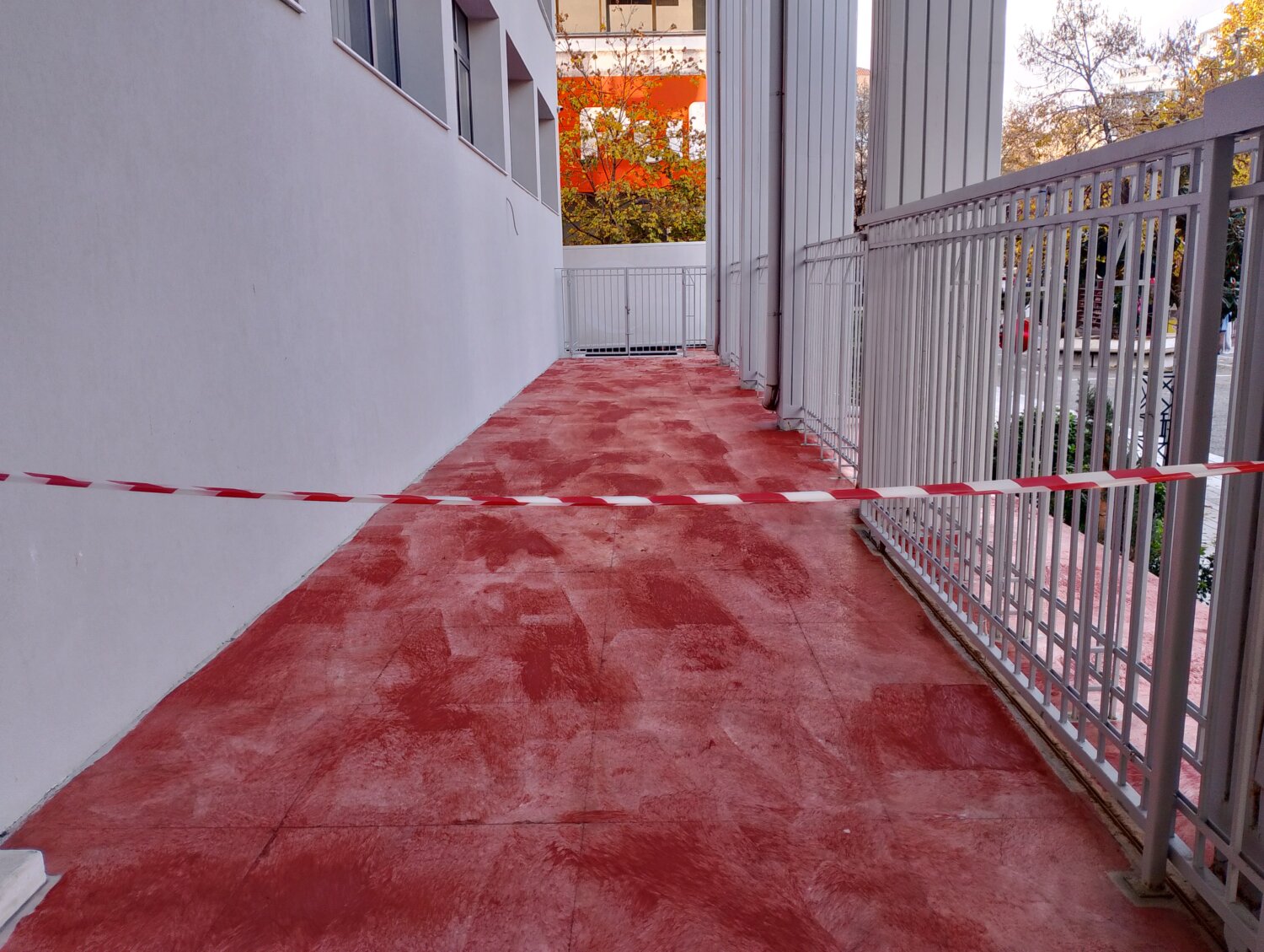Εργασίες πραγματοποιούνται στην είσοδο του Δικαστικού Μεγάρου Λάρισας στο πλαίσιο της σύμβασης που υπογράφηκε μεταξύ του Εφετείου Λάρισας και της αναδόχου εταιρείας για τη στεγάνωση, τη δημιουργία κλίσεων και την τοποθέτηση αντιολισθηρών πλακιδίων στην είσοδο του Δικαστικού Μεγάρου.