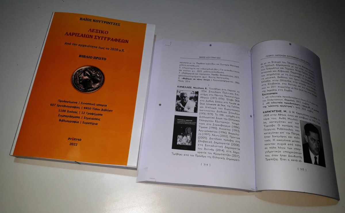 Για το βιβλίο αυτό έχει πει στη larissanet: «Προσπάθησα ώστε το Λεξικό Λαρισαίων Συγγραφέων να διαβάζεται και όχι ν’ αποτελέσει ένα λεξικογραφικό εγχειρίδιο που θα μπει στο ράφι της βιβλιοθήκης. Στο πλαίσιο αυτό, προστέθηκαν κεφάλαια για την πνευματική ανάπτυξη της περιοχής σε συνδυασμό με τη συνοπτική της ιστορία, ωφέλιμα συμπεράσματα για τη λαρισινή λογοτεχνία, σημειώσεις εκτός κειμένου (υποσημειώσεις), παραστατικά γραφήματα, αποσπάσματα από έργα Λαρισαίων δημιουργών, πλούσιο φωτογραφικό υλικό συγγραφέων και βιβλίων (1250), εξώφυλλα λαρισαϊκών λογοτεχνικών-πολιτιστικών περιοδικών (30)».