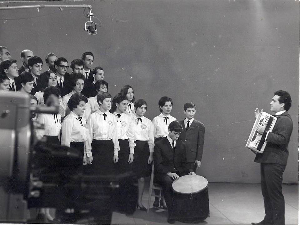 Εδώ είμαστε η Χορωδία του Συλλόγου των Ελλήνων της Ουγγαρίας στην Ουγγρική Κρατική Τηλεόραση στην Βουδαπέστη παρουσιάζοντας αντιστασιακά τραγούδια κατά της χούντας, με μαέστρο,τον αγαπητό μας Βούλγαρο μουσικό Emil Paraskevov, που μας συνόδευε με το ακορντεόν και εγώ είμαι στο νταούλι.