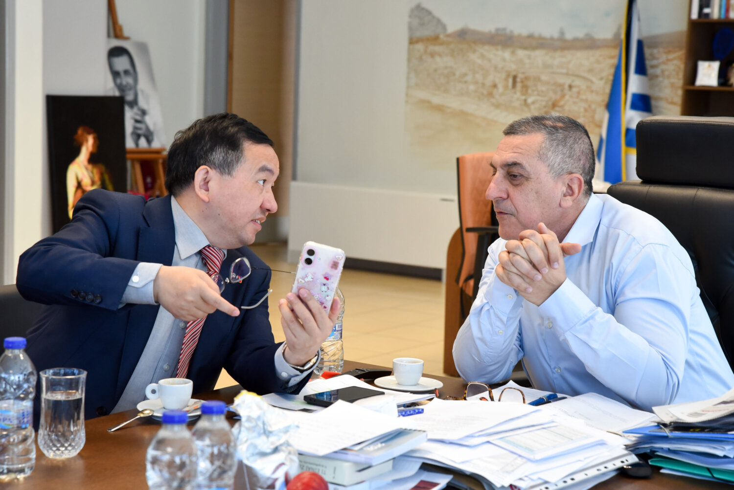 Πολύ παραγωγική υπήρξε η συζήτηση του Περιφερειάρχη Θεσσαλίας κ. Δημήτρη Κουρέτα με τον Πρέσβη της Κίνας κ. Fang Qiu στην Ελλάδα, κατά τη συνάντηση τους που πραγματοποιήθηκε στο γραφείο του Περιφερειάρχη.