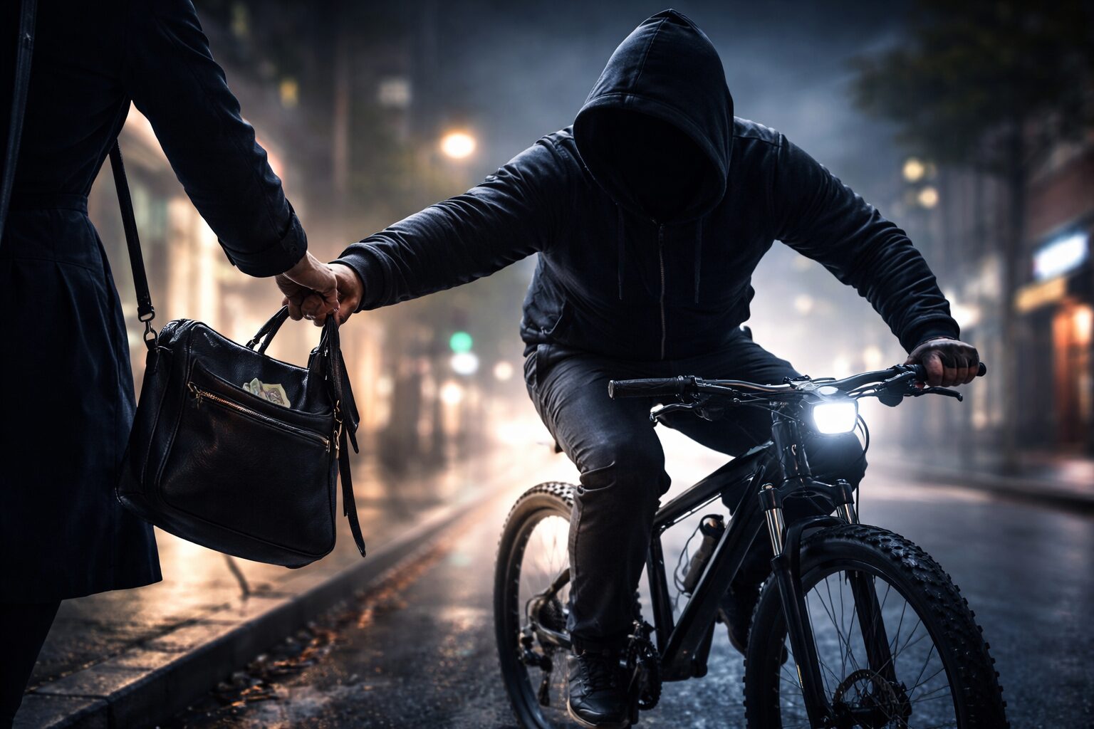 Ειδικότερα, λίγο νωρίτερα, ο δράστης, κινούμενος με ποδήλατο, αφαίρεσε από ημεδαπή πεζή την τσάντα της, η οποία περιείχε προσωπικά έγγραφα, κάρτες τραπεζών, κλειδιά και το χρηματικό ποσό των -140- ευρώ.