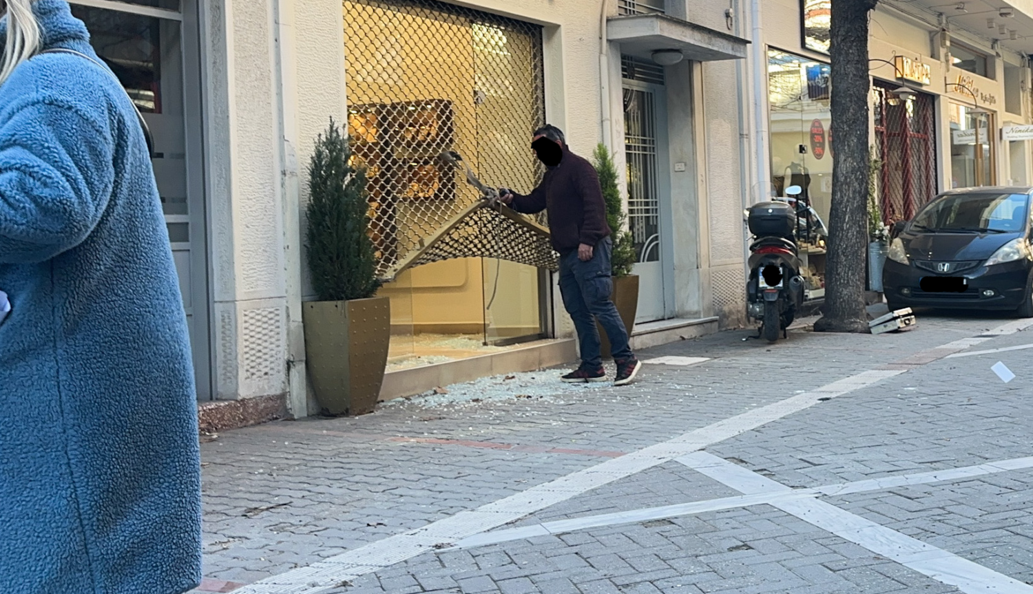 Στον πεζόδρομο της οδού Παπακυριαζή, λίγα μέτρα μακριά από το Δικαστικό Μέγαρο Λάρισας, διαρρήκτες μετά τις 4.00 π.μ. έδεσαν με ιμάντα το ρολό και αφού το τράβηξαν, έσπασαν τη τζαμαρία και μπήκαν στο εσωτερικό του κοσμηματοπωλείου.