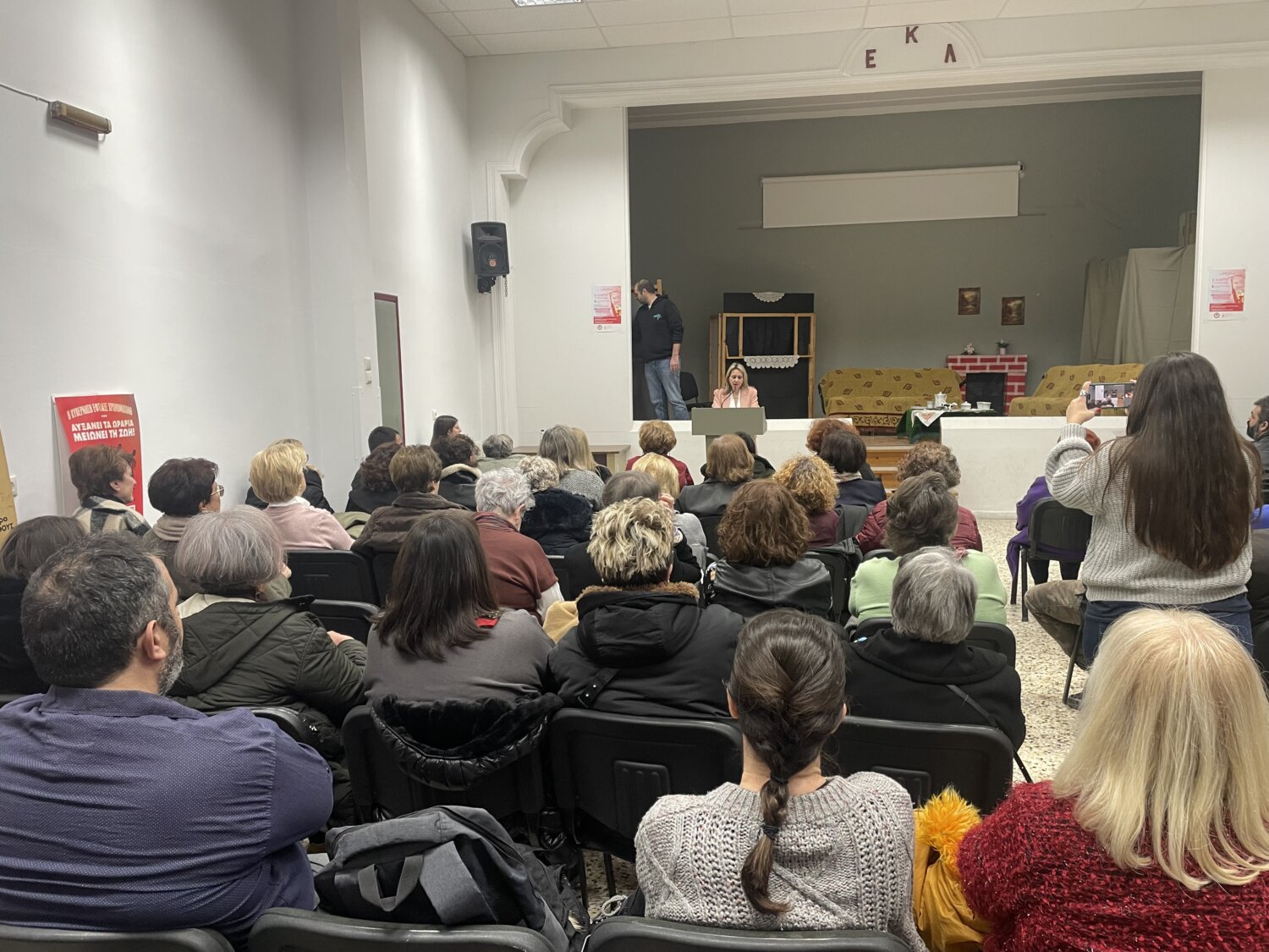 Ένα πρωτότυπο έργο με τίτλο «Είναι δικός σου όλος ο κόσμος» παρουσίασε η θεατρική ομάδα «Γιάννης Νεγρεπόντης» του Εργατικού Κέντρου Λάρισας σε μία εκδήλωση της Ένωσης Γυναικών Λάρισας (μέλος ΟΓΕ), με αφορμή την Παγκόσμια Ημέρα της Γυναίκας.