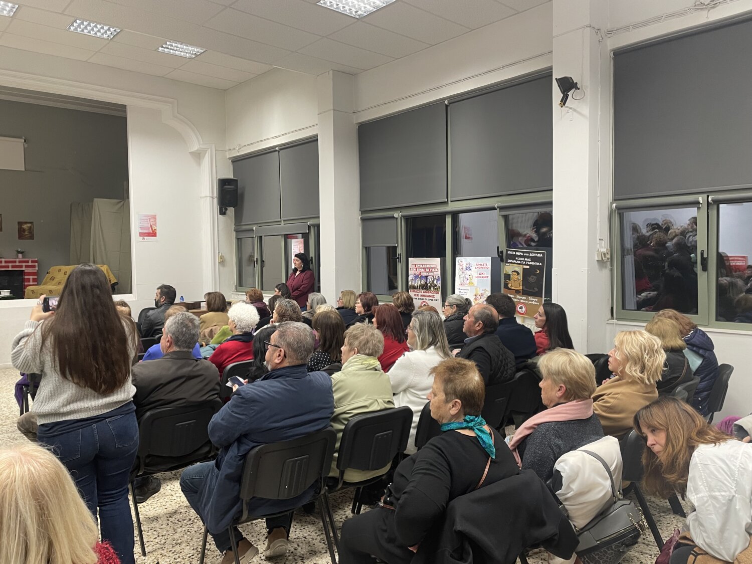 Η πρόεδρος της Ένωσης Γυναικών, Κατερίνα Πάσχου πριν την έναρξη έκανε μια ιστορική αναδρομή, ενώ στάθηκε ιδιαίτερα και στα γεγονότα του σήμερα, με τις πολεμικές συγκρούσεις στη Μέση Ανατολή, αλλά και τις εργασιακές συνθήκες.