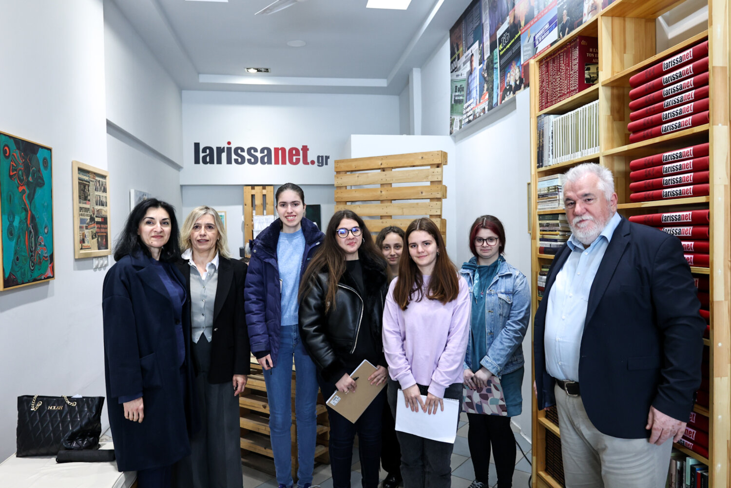 Η ομάδα, που διαθέτει δημοσιογραφικά ενδιαφέροντα, επισκέφτηκε τα γραφεία της εφημερίδας Larissanet λόγω των εκτενών δημοσιευμάτων που έχει κάνει η εφημερίδα στο εν λόγω κτήριο. Εκεί συζήτησε με τον εκδότη της κ. Χρ. Μπεχλιβάνο για τον τρόπο με τον οποίο διεξάγεται μία δημοσιογραφική έρευνα, καθώς και για το θέμα των fake news και της αξιοπιστίας των πηγών.